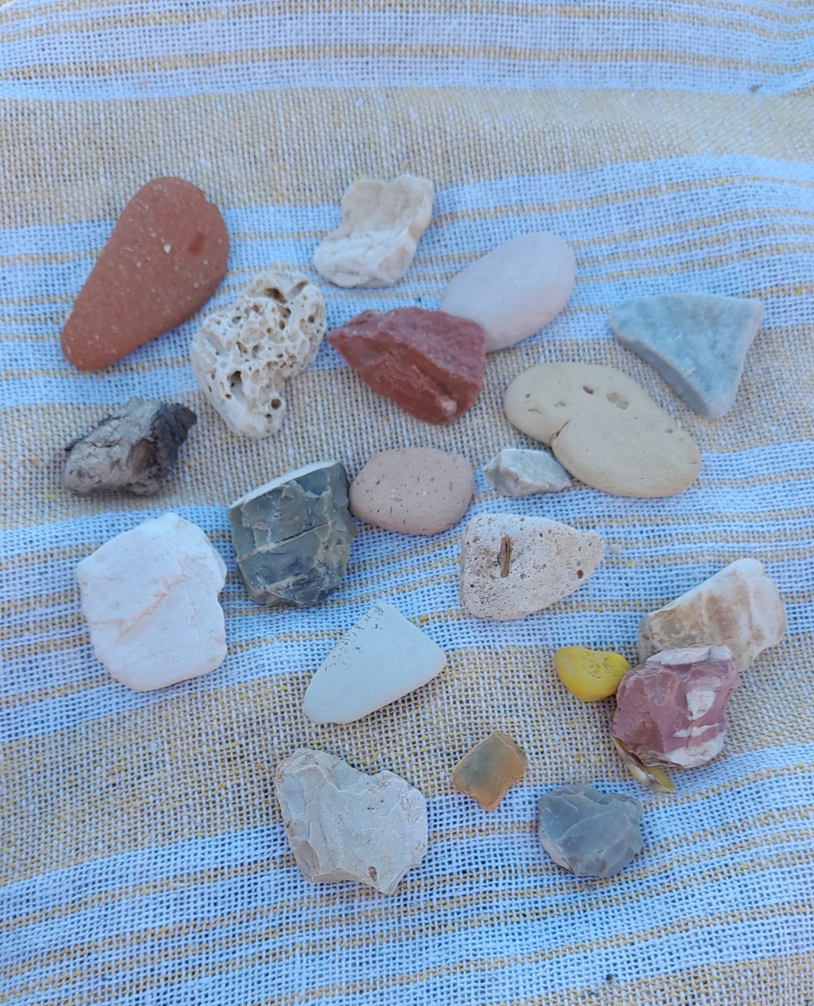 Dar eu nu mai văzusem marea de o bucată de vreme, aşa că m-am aşezat pe bucăţica de nisip. Si m-am lăsat să privesc în jur cu ochi care voiau să descopere. Am început de la pietrele de pe ţărm, am ales câte una din fiecare tip de rocă – şi rapid m-am regăsit cu o adevărată „comoară” de pietre felurit colorate, sparte în unghiuri sau rotunjite de valuri. Un univers mic, strâns cu drag pe prosopul de plajă. Apoi am privit mai departe, căutând în mare nuanţe diferite de albastru, verde, galben şi alb. Din nou am strâns o întreagă paletă. Am început apoi să aud valurile, să le aud cu adevărat şi să miros marea, mi-am simţit faţa şi corpul mângâiate de briză, am simţit pe piele căldura soarelui, şi …dintr-o dată parcă am intrat în armonie cu universul. Acum casa părăsită şi barca veche nu mai păreau dezolante, ci semnul că cineva, cândva, iubise colţul acesta de lume, şi lăsase pentru mine o urmă a trecerii sale prin viaţă. Părea că prezenţa mea acolo dădea sens şi vieţilor trecute, ale celor ce călcaseră pe acel mal înaintea mea, lăsându-mi un mesaj de continuitate.
